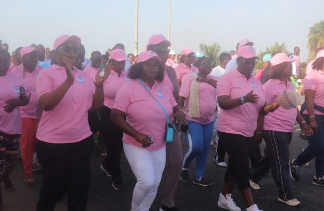 Des centaines de personnes à majorité des femmes affiliées au Mouvement des femmes UNIR (MFU) habillées pour la plupart au couleur rose (symbole de la lutte contre le cancer) ont parcouru le matin du samedi 2 décembre 2023 les artères de la ville d’Aného, environ une cinquantaine de km à l’Est de Lomé. A travers une marche sportive bien rythmée par des chants et des sonorités du pays, placée sous le thème : « les cancers féminins, j’en fais mon combat sportif », partie de la mairie de la commune Lacs 1, sur environ 5km, cette marche a chuté à la place publique de Jéricho.