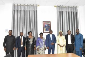 La première séance de travail a réuni la délégation du PNUD, conduite par la Représentante résidente, Mme Binta SANNEH. Les discussions ont porté sur plusieurs projets structurants, notamment :