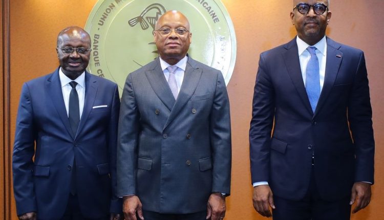 Jean-Claude Kassi Brou, le Gouverneur de la BCEAO reçoit le PCA du DC/BR Faman Touré et le DG du DC/BR Birahim Diouf