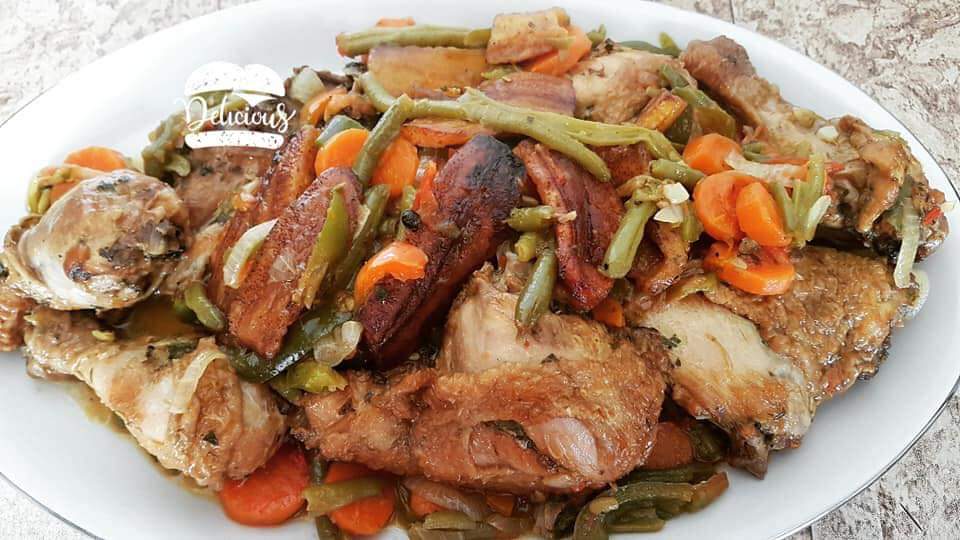 -Ajoutez les plantains frits, les haricots verts. Couvrir et laissez mijoter
