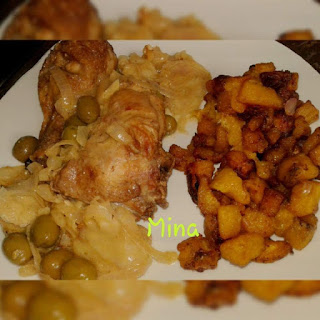 Ensuite frire le poulet une fois cuit le réserver. Dans une marmite, mettre le reste de marinade jusqu’à ce que les oignons soient translucides ajouter le poulet et laisser cuire 30 minutes 3 min avant la fin de votre cuisson il faut ajouter les olives vertes.