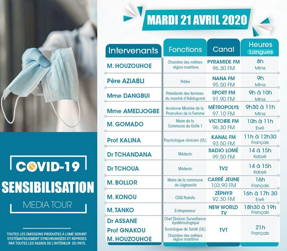 Pour atteindre sa cible qu’est la population, un média tour a été initié. Depuis deux mois, des plages horaires sont sollicitées sur les radios et télévisions de Lomé pour des émissions et relayées sur les chaines de l’intérieur du pays. Cette communication est pilotée par une cellule depuis la présidence de la République. Ainsi, on voit des personnalités de divers horizons défiler sur ces médias chacun apportant son expertise dans son domaine dans la lutte contre la pandémie. Même si on doit dénier le caractère politique des experts qui interviennent sur les médias, un constat frappe : rares sont les personnalités politiques de l’opposition qui sont sollicitées dans ces émissions.