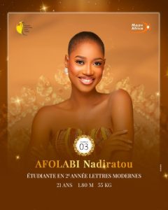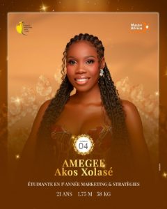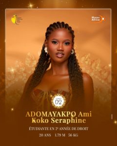 Cette année, les organisateurs promettent un niveau exceptionnel, avec des candidates « aussi belles les unes que les autres« , prêtes à éblouir le public par leur charme et leur éloquence. TOGO SCOOP INFO vous dévoile t les portraits de ces jeunes femmes talentueuses et ambitieuses, qui symbolisent l’espoir et le dynamisme de la jeunesse togolaise.