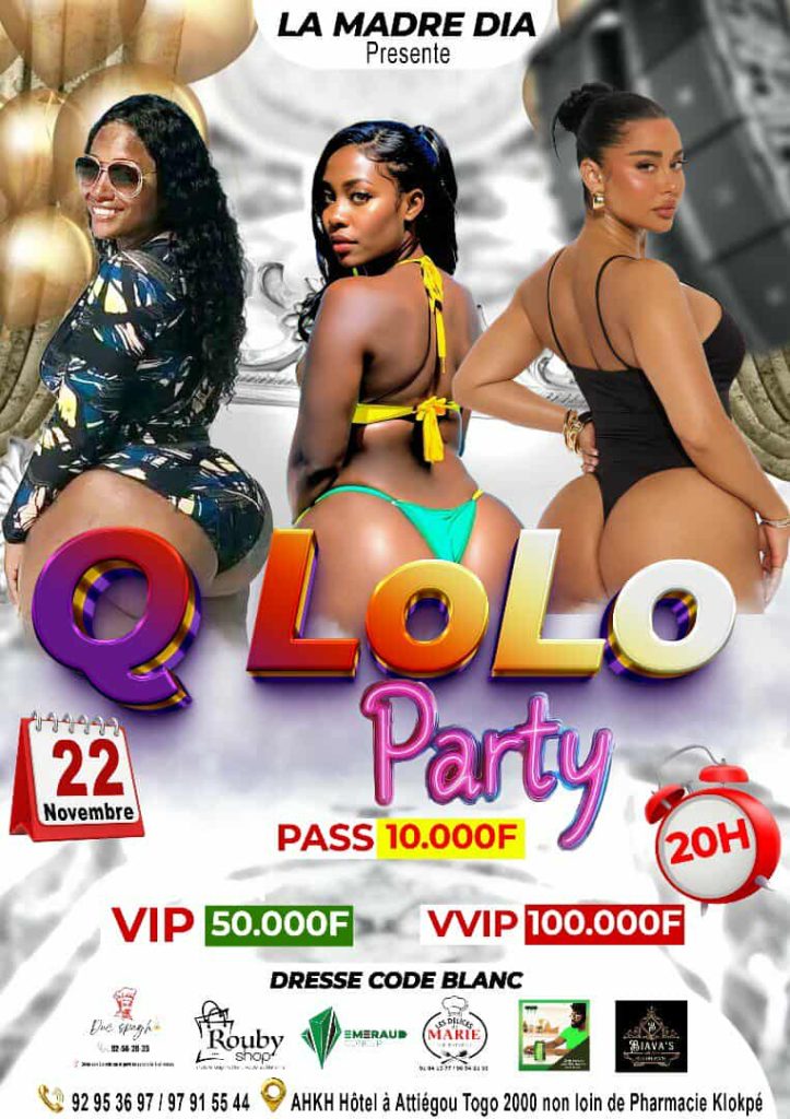 Lomé s’apprête à vibrer au rythme d’un événement très attendu : la Q Lolo Party, prévue pour le 22 novembre 2025 à l’AHKH Hôtel. Cette soirée glamour et hautement festive promet une ambiance survoltée mêlant beauté, élégance, sensualité et vibes haut de gamme.