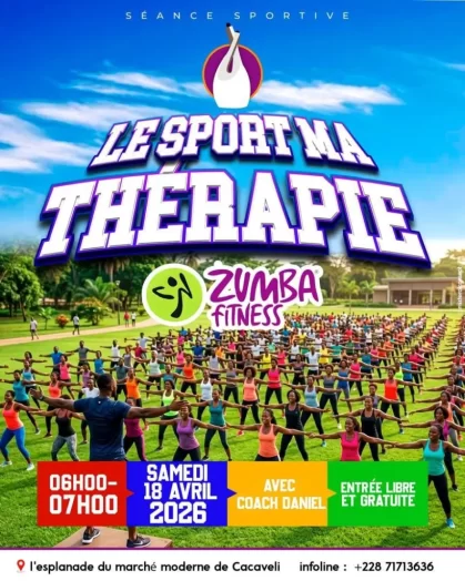 Après une semaine de travail intense, le marché moderne de Cacaveli propose une parenthèse de détente et de remise en forme ce samedi 18 avril 2026. Dès les premières heures de la matinée, l’esplanade du marché se transformera en véritable espace de bien-être à l’occasion d’une séance spéciale de Zumba Fitness, placée sous le thème évocateur : « Le sport, ma thérapie ».