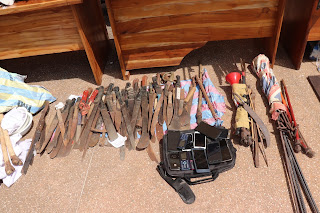 « On a trouvé 86 machettes dans une perquisition chez un seul individu, les frondes avec les projectiles qui sont fabriqués en fer, des lances, des flèches qui sont traditionnellement empoisonnés », égrène l’officier qui, certainement doutait qu’il n’arrivait pas à convaincre et alors il martèle « il faut voir la dangerosité de ces petits canifs qui étaient préparés par centaine. Lorsqu’ils vous croisent et que vous ne voulez pas obtempérer, ils vous l’enfoncent dans l’abdomen ».